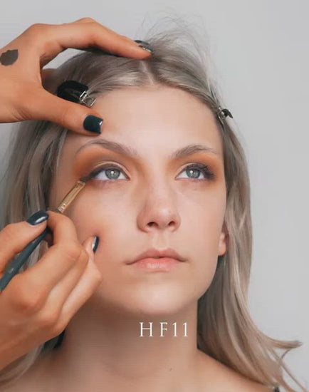 The HF11 eyebrow and eyeliner brush (with spoolie) is a convenient double-ended brush that covers all your eyeliner and eyebrow needs, combining a short-angled brush with a spoolie. The short- angled brush is ideal for creating the perfect wing or defining brows, while the spoolie combs brows and lashes into place. The HF11 is made with synthetic bristles and is perfect for use with powder, cream, and gel formulas.