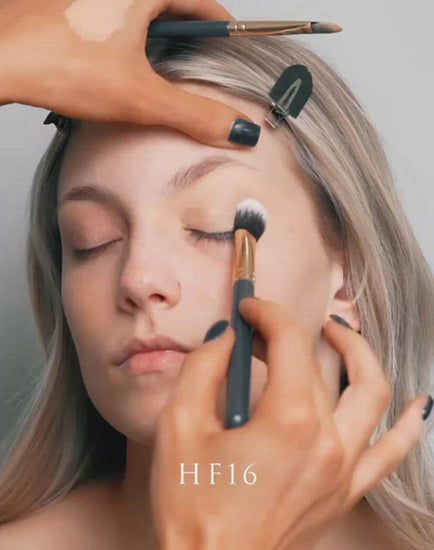 The HF16 multi-use, concealer, eye-base and shadow brush is perfect for achieving a flawless under-eye look. This brush will get rid of any under eye darkness, discolouration, spots, and blemishes perfectly, giving you a beautiful makeup finish. Its shape is also perfect for blending any cream texture into the skin, applying, and packing on eyeshadow on the eyes, and patting in an eye base.